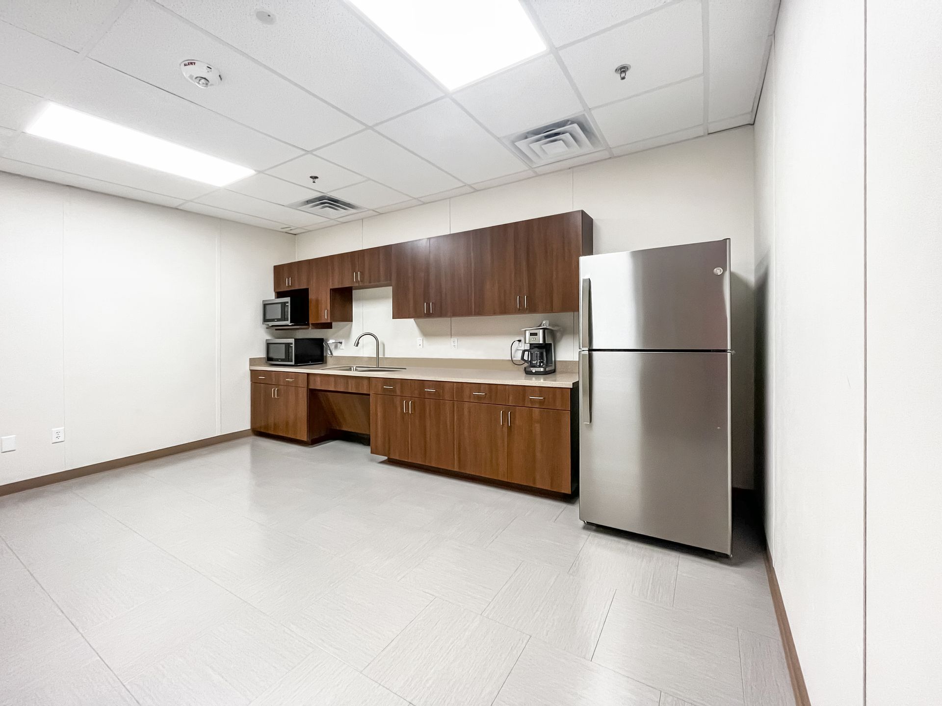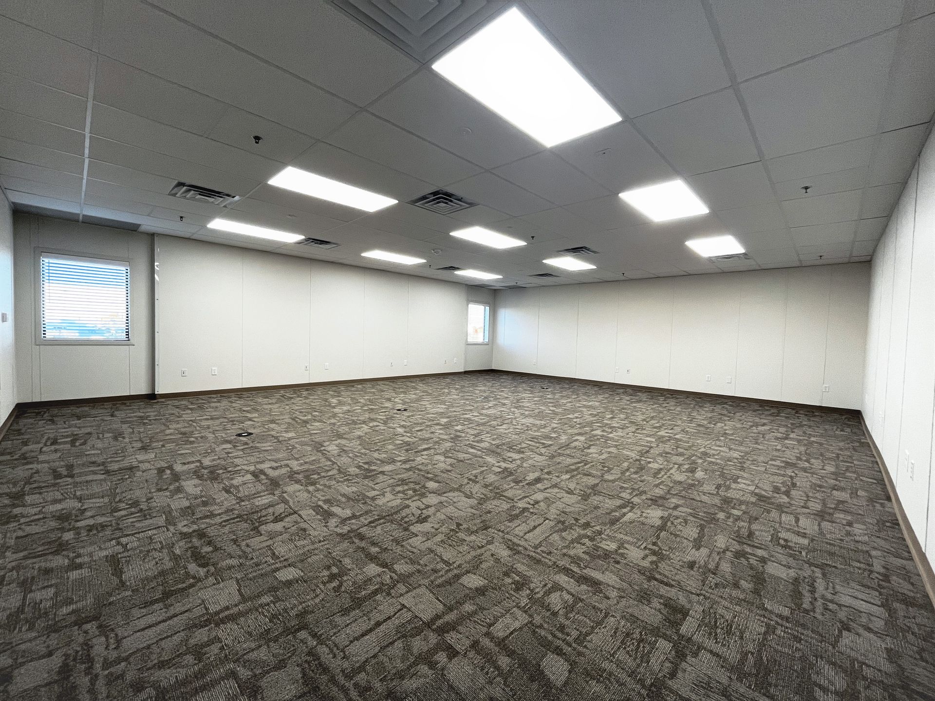 The unclassified area of the building includes a vestibule, reception area, corridors, open office area for Program 1 and Program 2, training classrooms for Program 1 and Program 2, printing rooms for Program 1 and Program 2, private offices, IDS/CCTV monitoring room, server room, electrical room, riser room, women, and men’s restrooms, break room area with a fridge, countertop microwaves, coffee maker, and a double basin sink with garbage disposal, and a janitor’s closet.