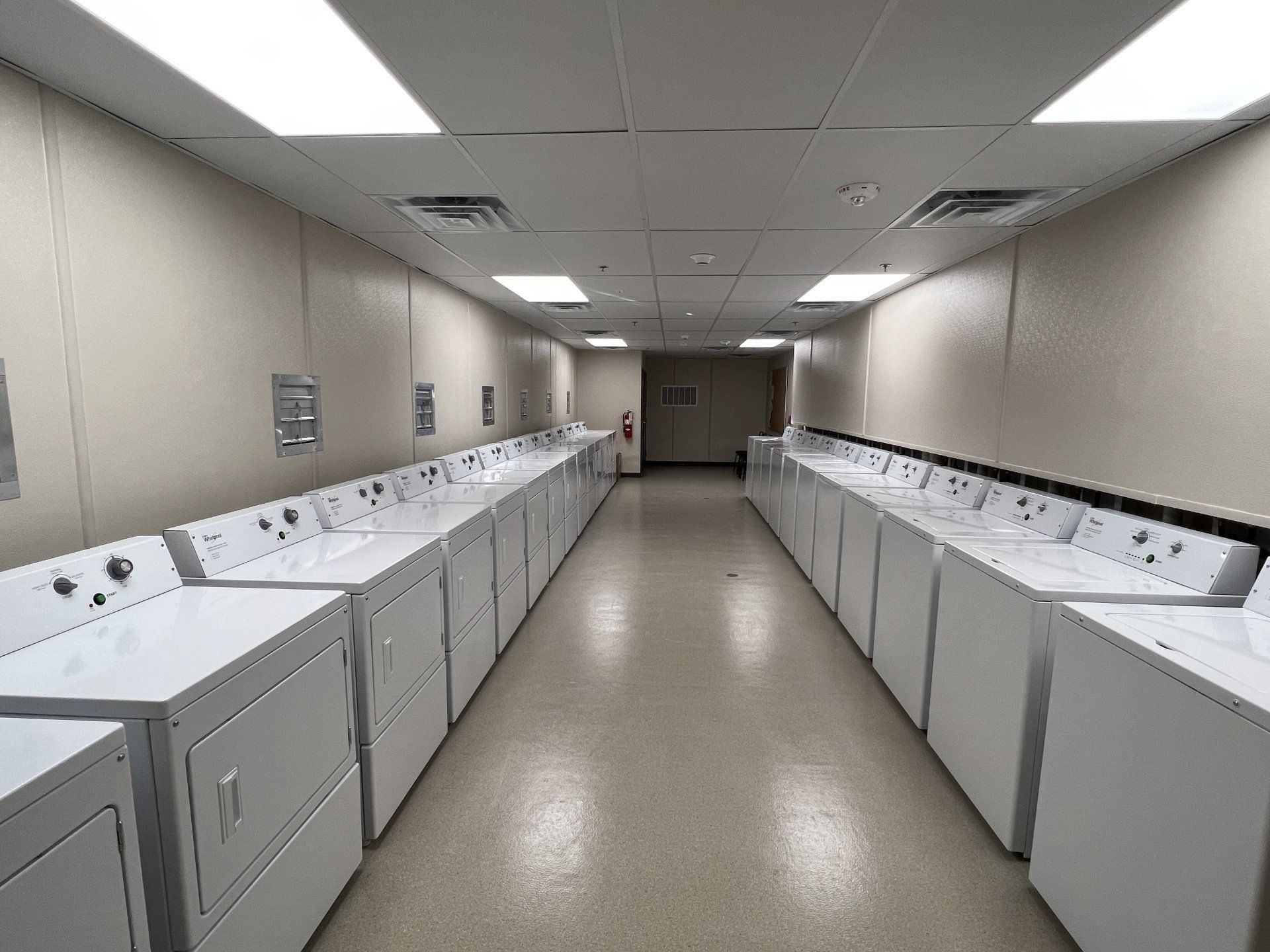 All washer/dryer appliances were provided by MCI including plumbing, electrical service, and vent exhaust for 11 commercial washers and 14 commercial dryers.