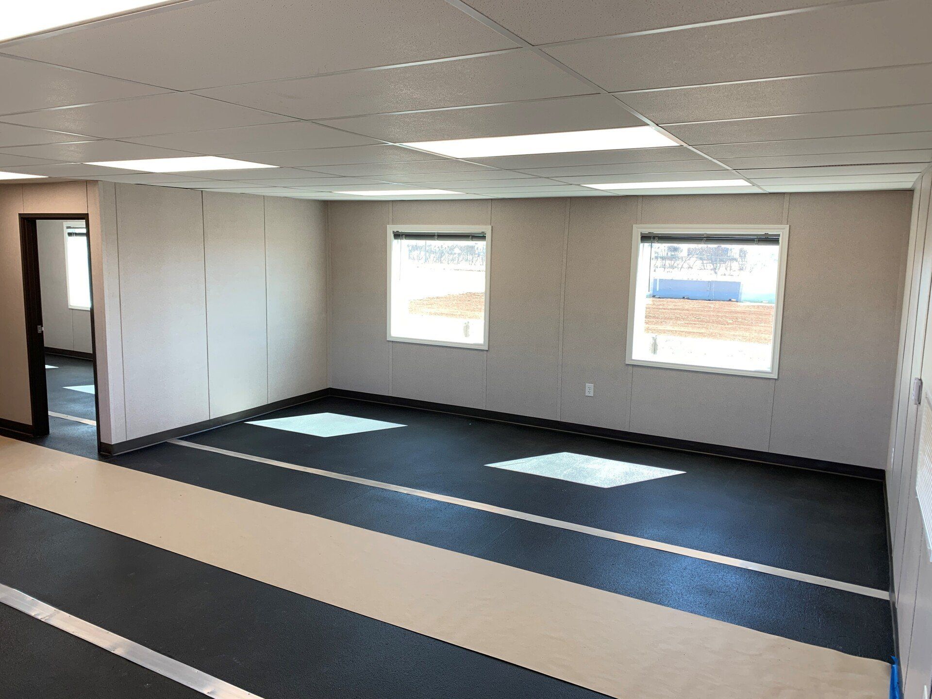 The floorplan offers two training rooms, hallway, and a storage room.