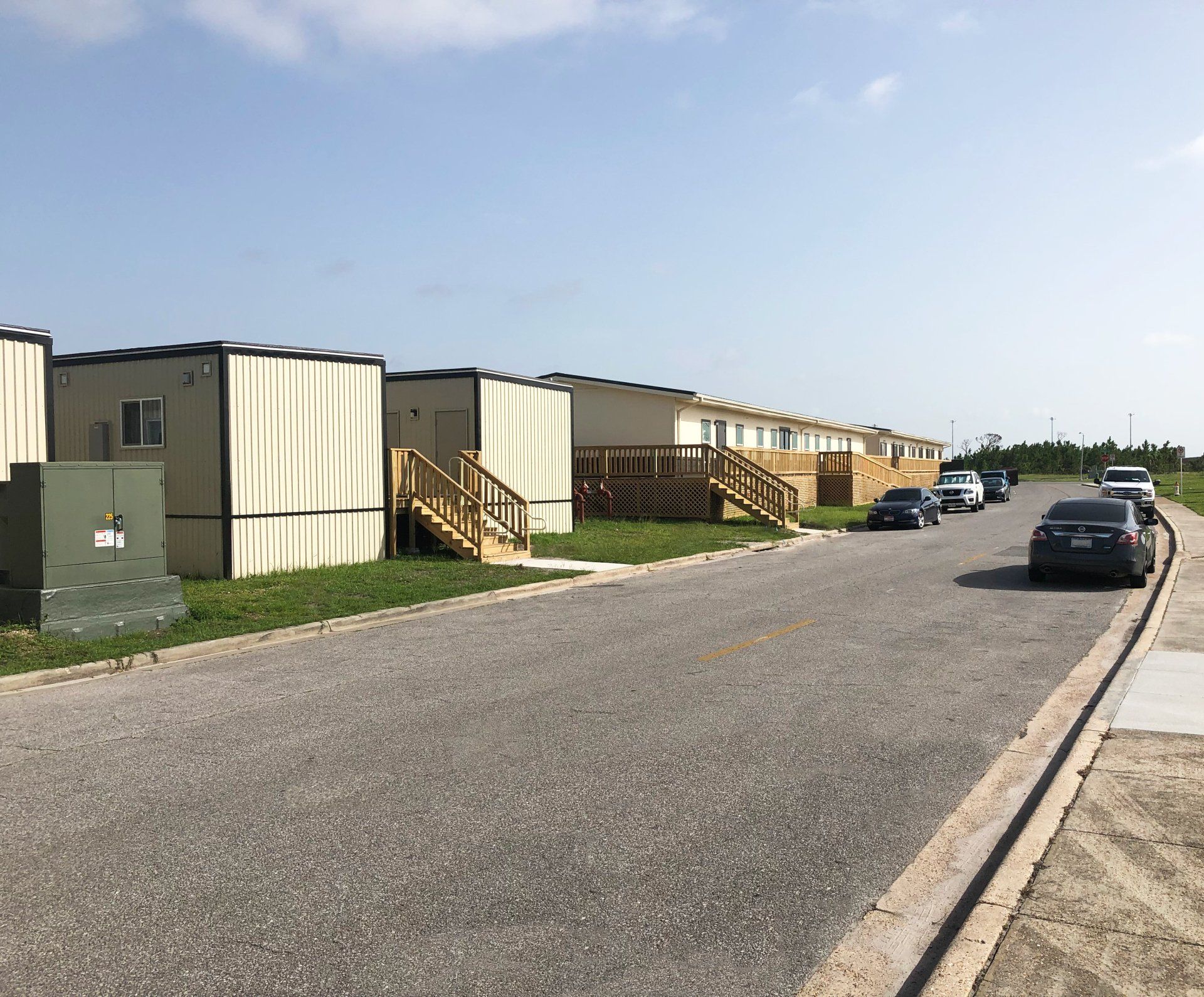 The single-story modular facilities provide temporary housing as part of the recovery effort from the destruction caused by Hurricane Michael in October 2018. The facilities will help restore normalcy to those affected by the storm and aid in their mission of reconstructing the base.