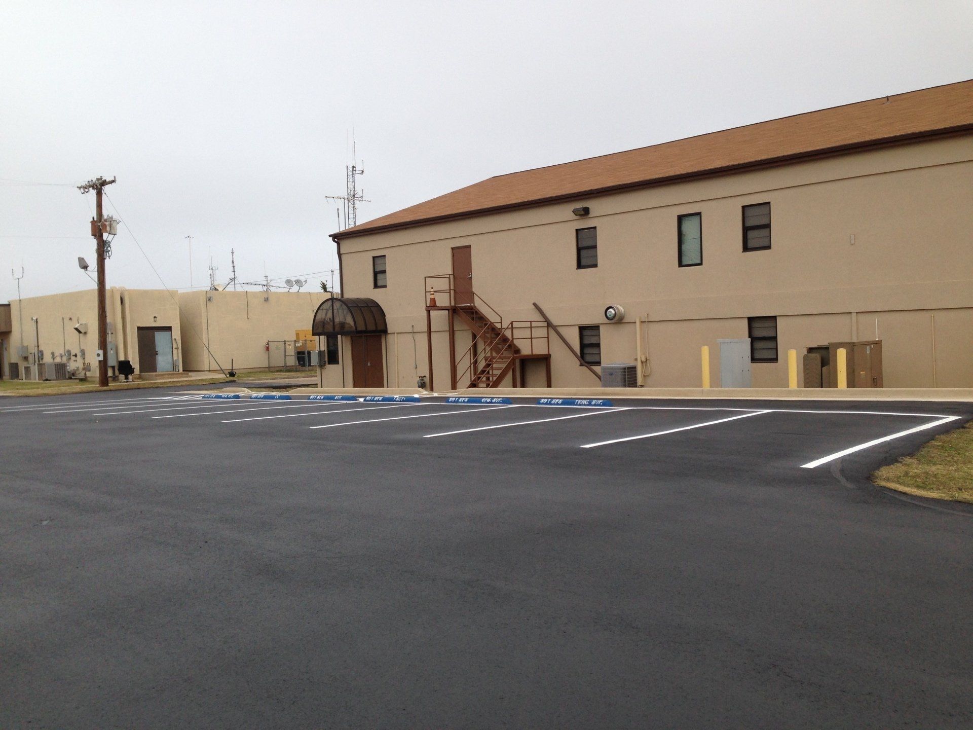 Repair various damaged asphalt areas designated by government and apply two coats of seal coating to approximately 380,000 SF of parking lots. The project also included installation of wheel stops and stripping.